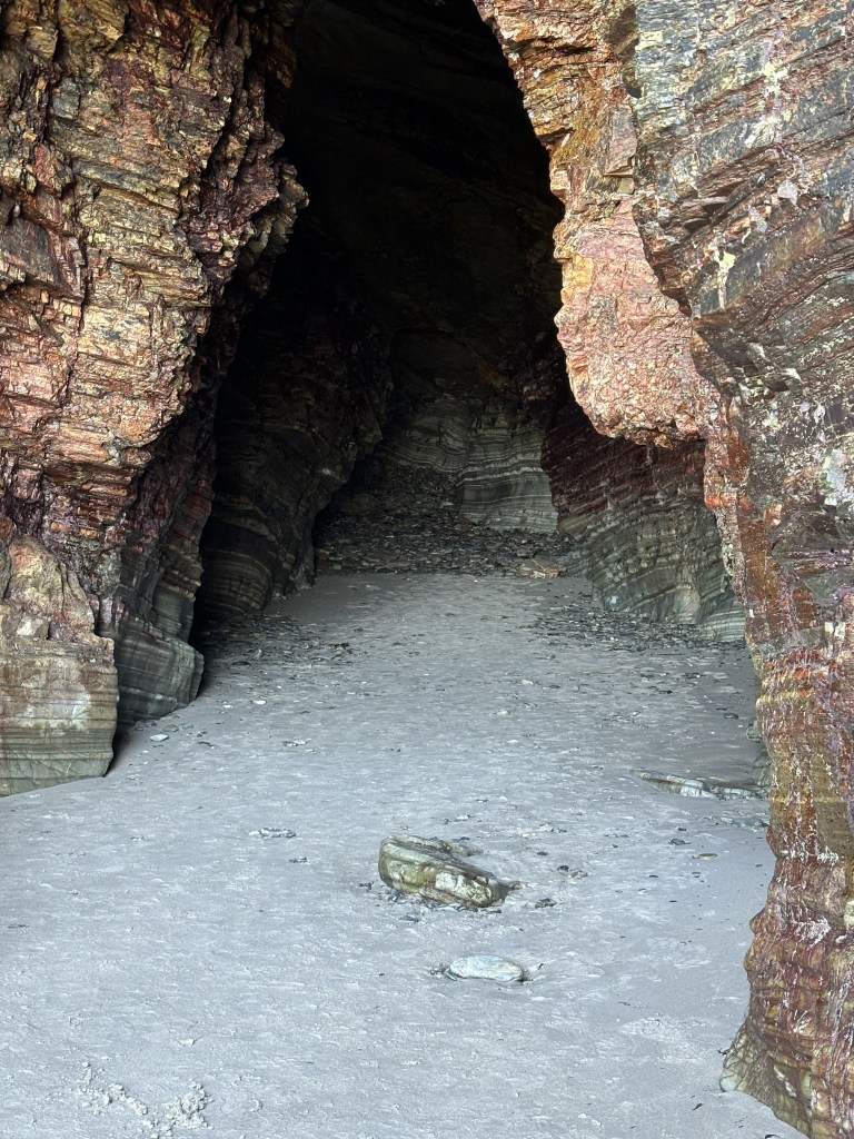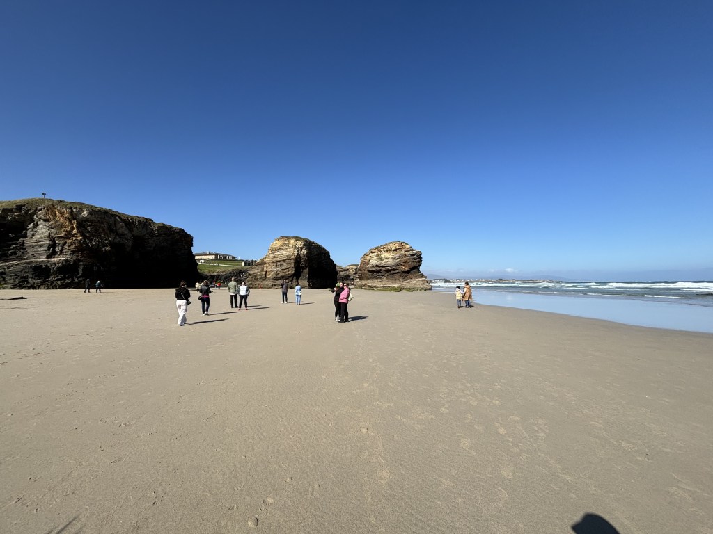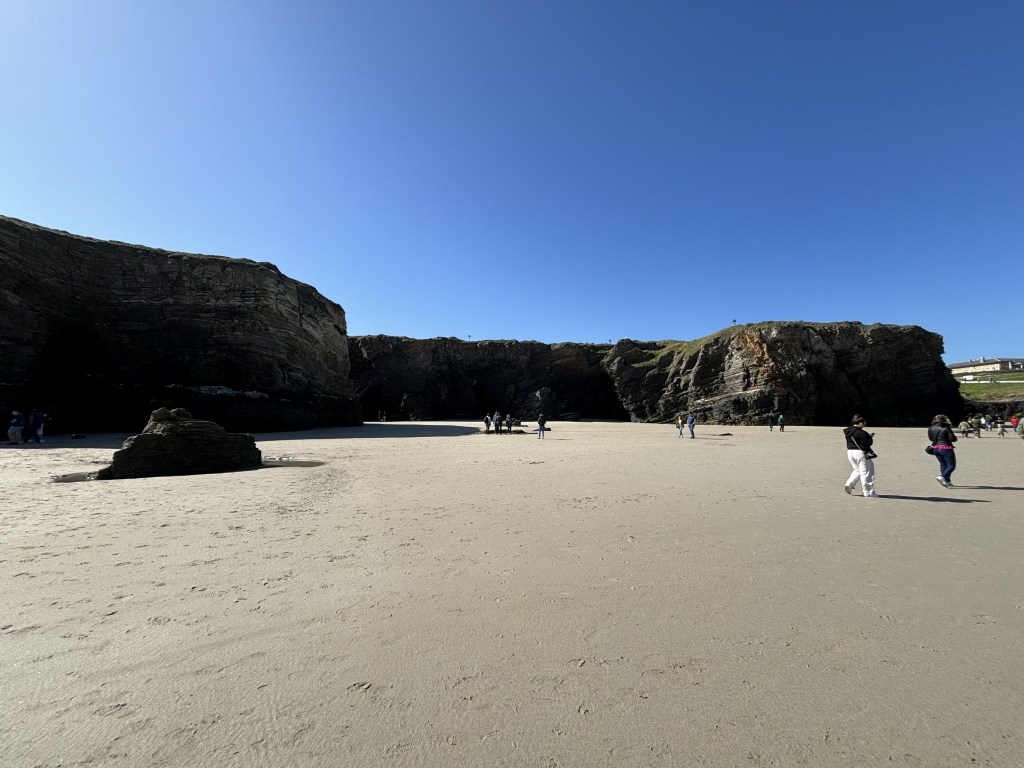 I quickly realized I hadn’t dressed quite right for northern Spain’s cool, breezy weather, but who cares about a little chill when you’re about to step onto such an iconic beach? With low tide revealing the majestic rock arches and hidden caves, we eagerly made our way down, excitement overpowering any discomfort. It was the kind of moment that made every little hiccup worth it!