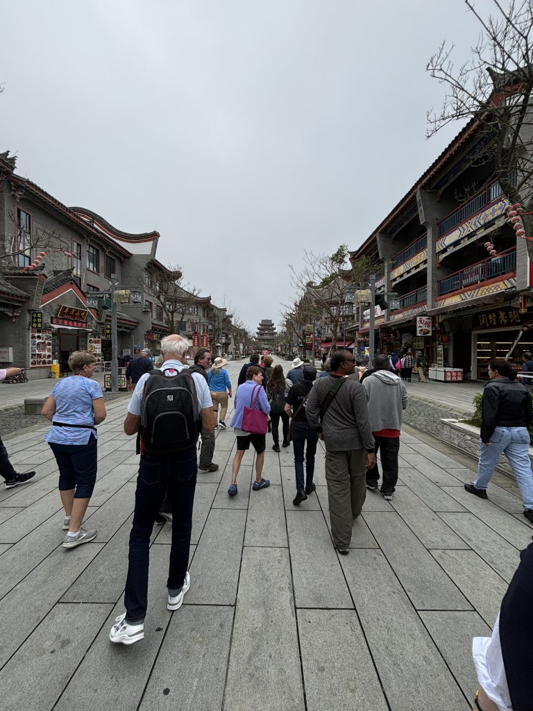 11/15/24 Day four found us in Pingtan, China where we would visit Haitan City. A half hour ride from the port, the city was designed as a replica of an ancient Chinese City but is actually only twenty years old. Much of the area surrounding the city has yet to be completed. With the onset of COVID and a real estate bubble, many buildings sit unfinished. (Add comments about the tour guide and her experienc of how China has changed since she was born in the 80’s.