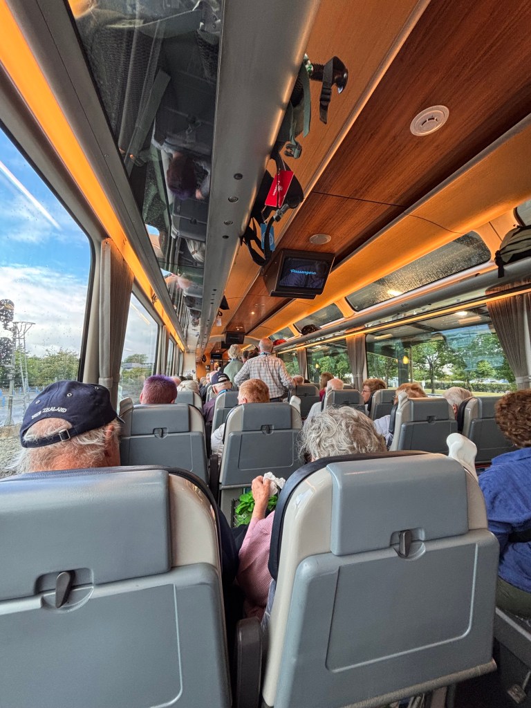 We arrived right on time in Greymouth, where our coach was waiting. The warmth inside the bus was a bit of a surprise after the crisp mountain air, but spirits were high as we continued south toward Franz Josef.