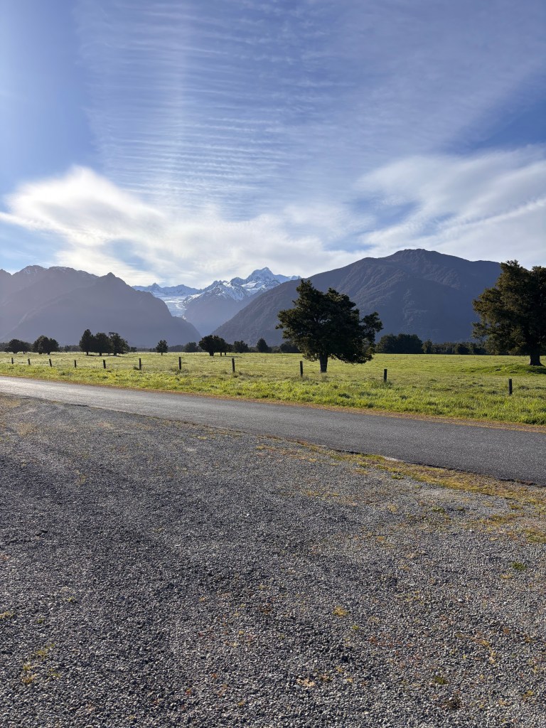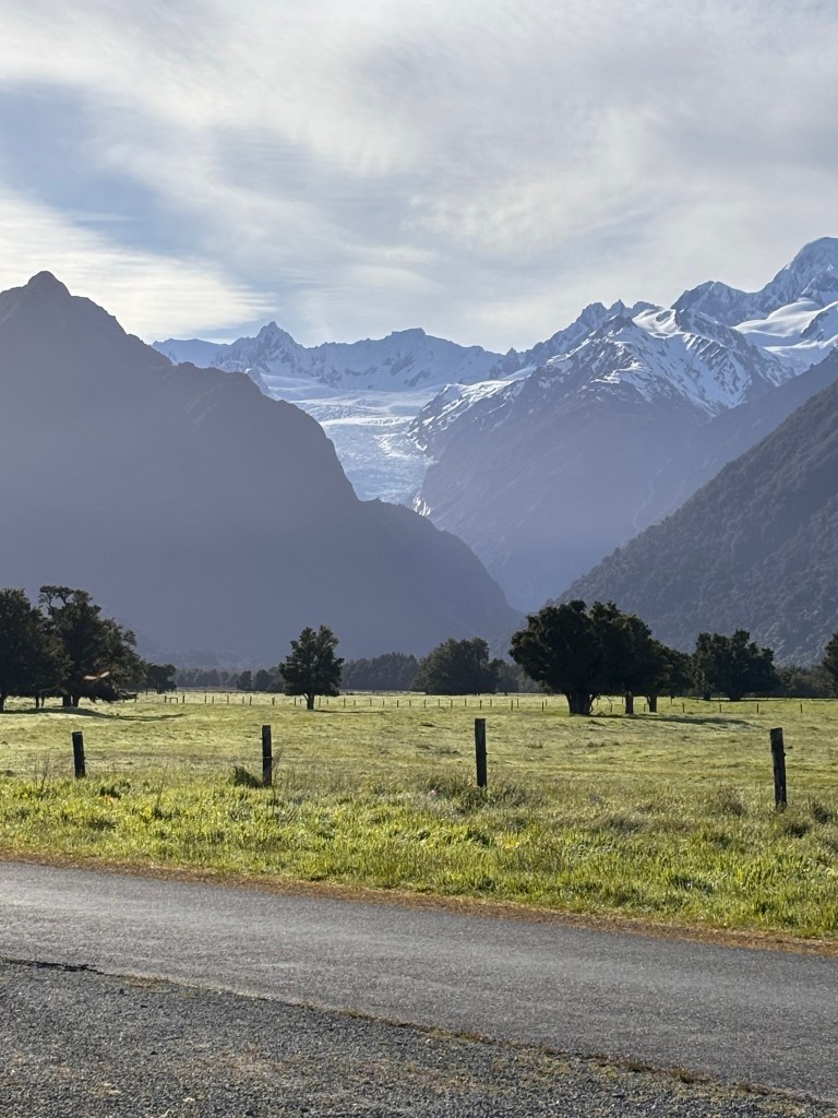 Our first stop was the Fox Glacier itself, visible from a distance but still an impressive sight. Interesting fact: the glacier descends about 2,600 metres over its ~13 km length and is fed by four alpine glaciers which receive massive snowfall.