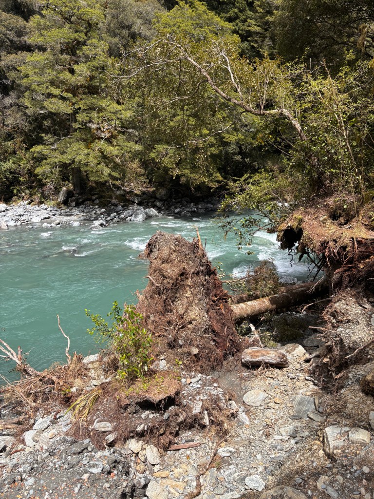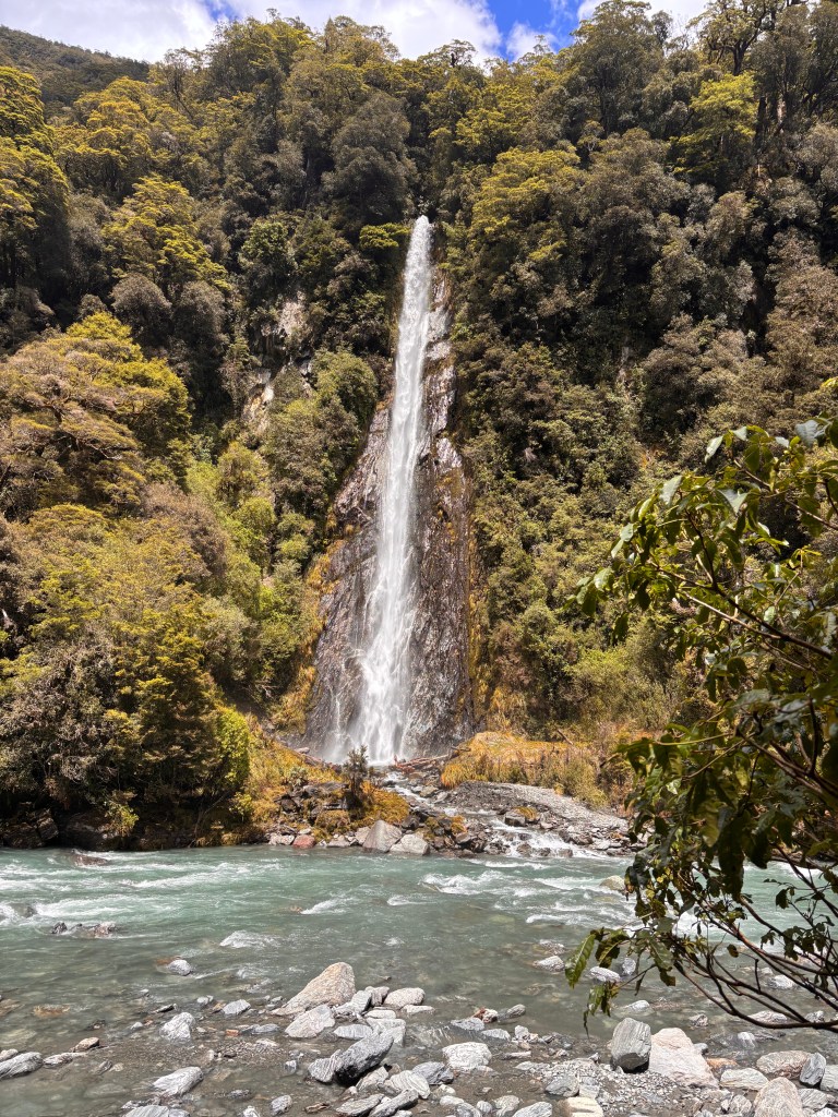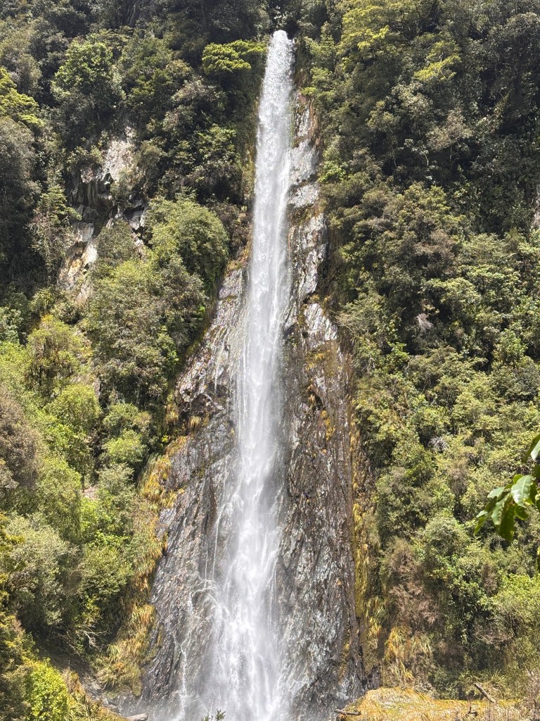 From there we continued on, stopping at several scenic points along the way. Next came Thunder Creek Falls — a stunning waterfall that tumbles into a chalky-blue river. The milky colour of the water comes from fine rock silt created by the glacier’s slow grinding motion. Campervan New Zealand+2Waterfalls+2 Before boarding the coach again, we spotted a cluster of butterflies resting along a wooden rail — a small, unexpected moment of beauty.