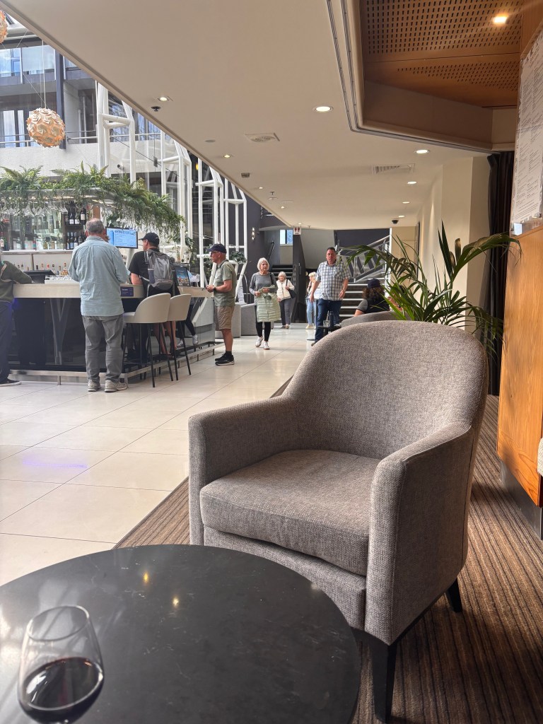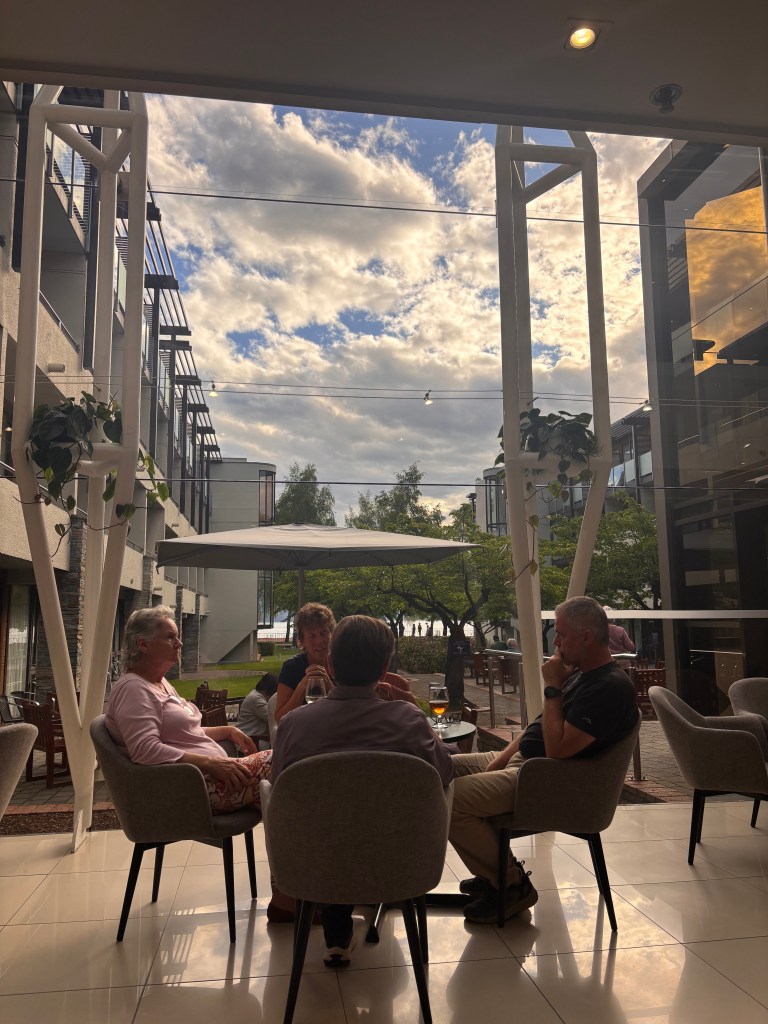 Our final stop before Queenstown was Wanaka, a charming lakeside town surrounded by mountains — the perfect preview to the beauty that awaited us in Queenstown. Fun fact: Lake Wanaka (on which the town sits) was carved by glacial action, and the town’s surroundings host New Zealand’s first sheepdog trials back in 1867. teara.govt.nz+1 For the 30-minute stop we opted to grab a beer at the local Ale House just across from the bus parking before re-boarding and making our way onto our hotel in Queenstown.