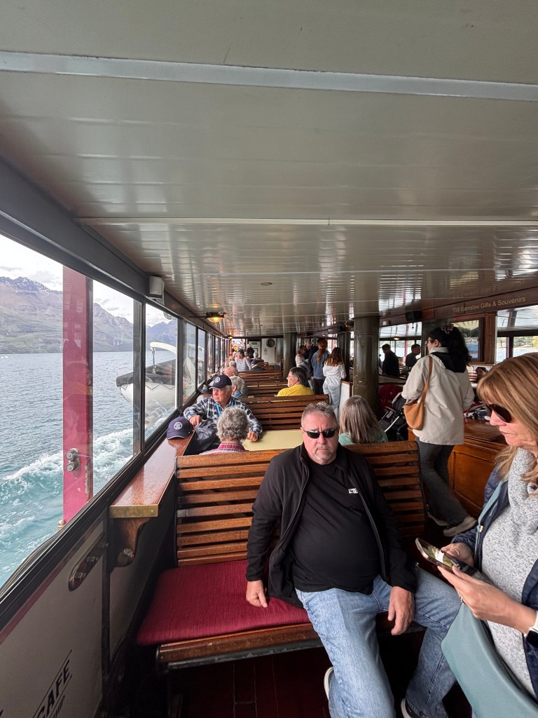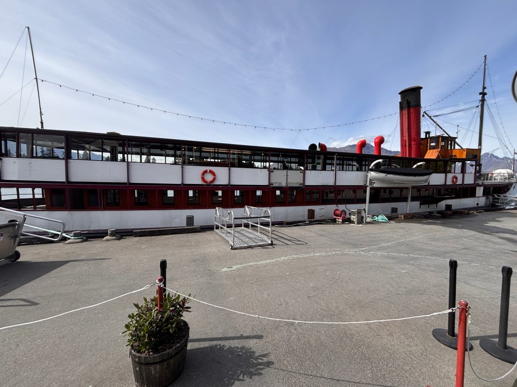After breakfast, I took a little time to catch up on the travel log before heading to the lobby at 10 a.m. for our excursion aboard the TSS Earnslaw, a beautifully restored vintage steamer that’s been crossing Lake Wakatipu for more than 110 years. Built in 1912, the Earnslaw was once vital to the region, ferrying livestock, supplies, and passengers between the remote lakeside stations and Queenstown. Today, it’s one of the last remaining coal-fired passenger steamers still operating in the Southern Hemisphere — affectionately known as the Lady of the Lake.