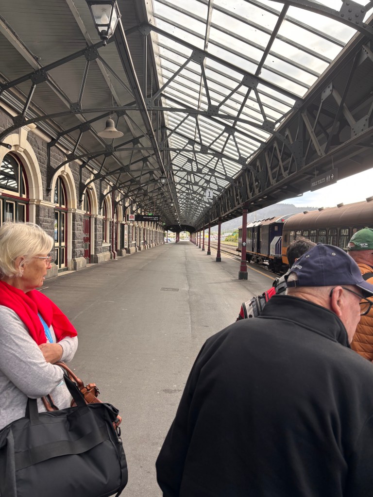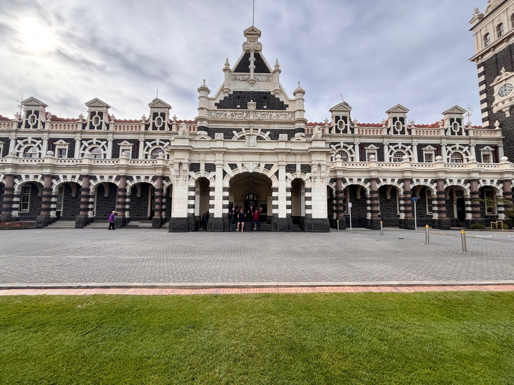 We boarded our train at the Dunedin Railway Station, an architectural gem built in 1906 and often called the city’s “Gingerbread House.” Designed by architect George Troup, the building is a striking blend of Flemish Renaissance and Victorian-era detailing, with dark basalt, creamy Oamaru limestone, stained-glass windows, and an ornate mosaic floor made from more than 750,000 tiles. It’s no wonder it’s one of New Zealand’s most photographed buildings.From this grand departure point, we boarded the Taieri Gorge train for the journey to Pukerangi and back to Dunedin. The scenery unfolded almost immediately deep gorges, century-old viaducts, winding rivers, and rugged hillsides carved by time. We even had a couple of opportunities to step off the train for photos, capturing both the landscape and the historic carriages framed against it. It was one of those experiences where the journey itself truly was the highlight.