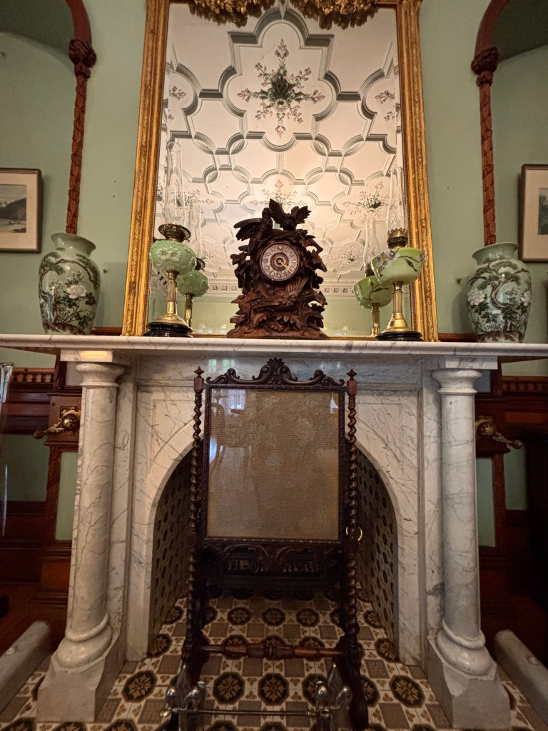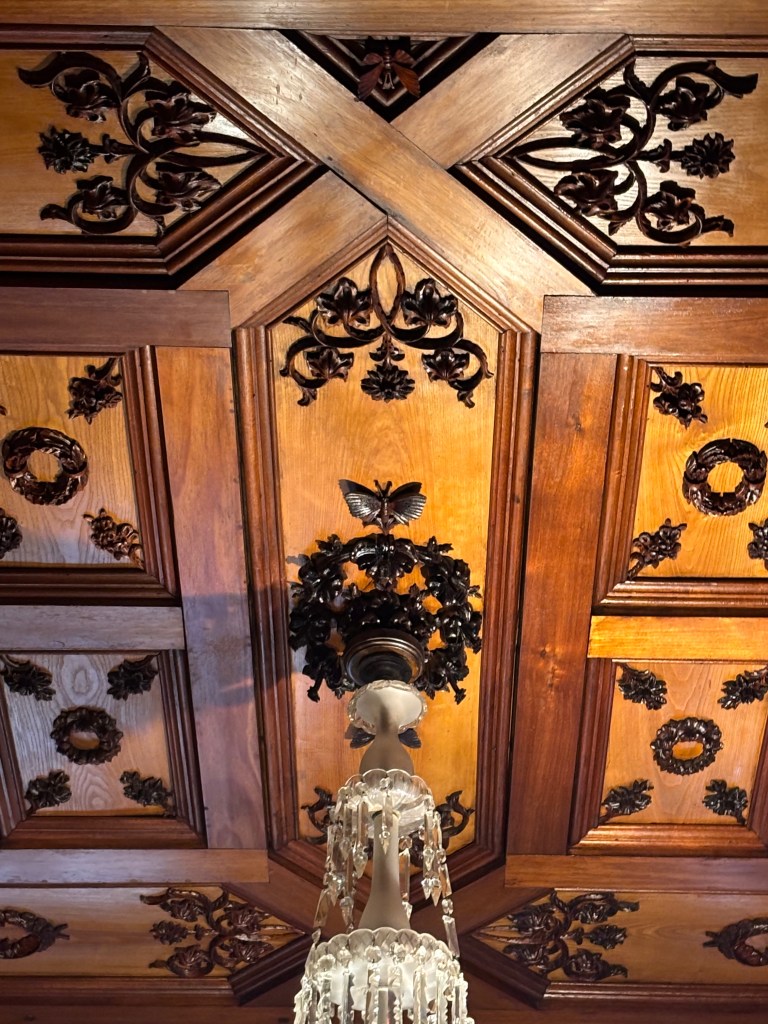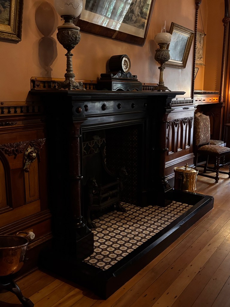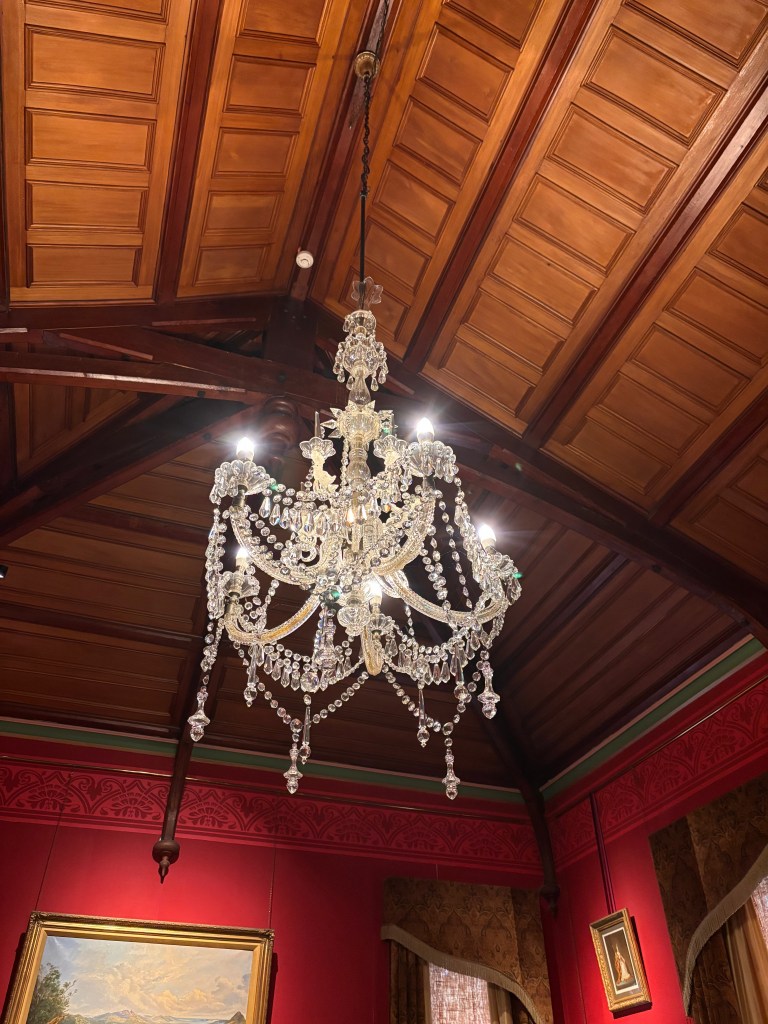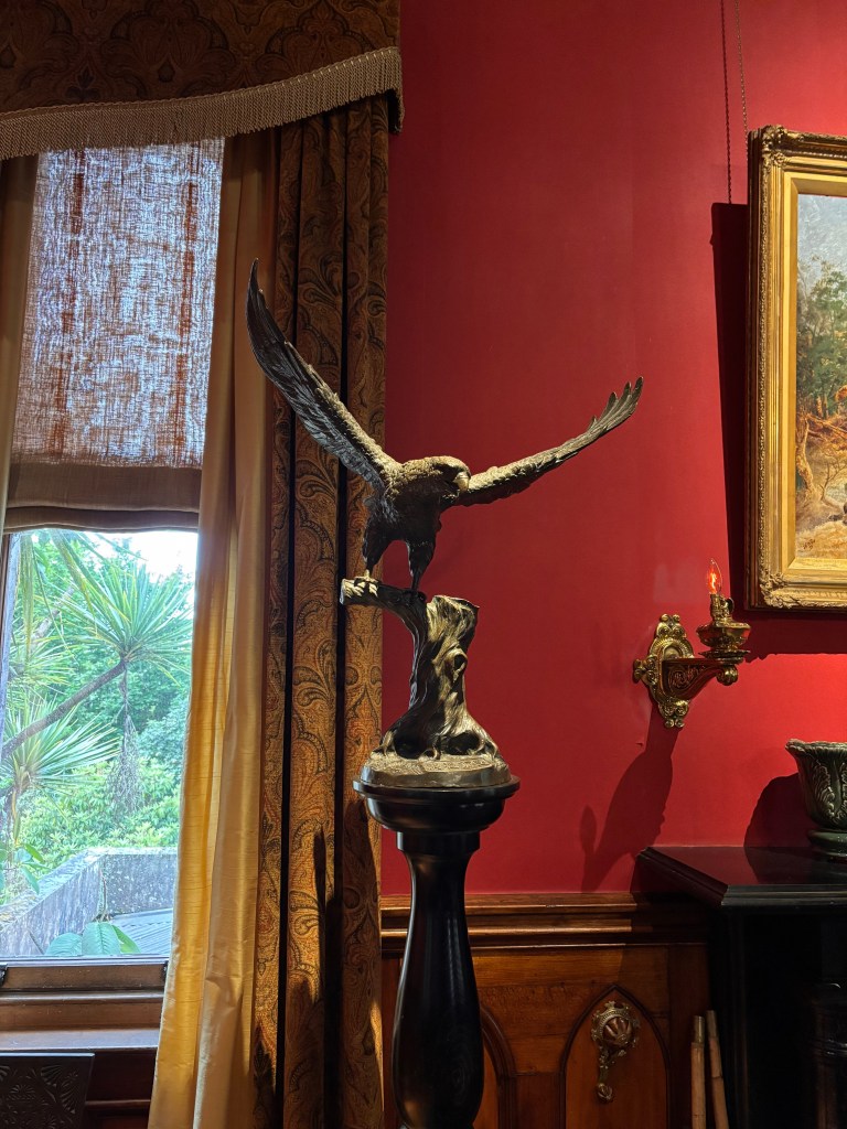 After tea, we were met by our guide for a personally narrated tour of the house — a highlight in its own right. As we moved from room to room, she wove together the castle’s history from its ambitious beginnings under William Larnach to its decades of decline and, finally, to the remarkable restoration undertaken by the Barker family. Her knowledge was impressive, delivered with the kind of ease and detail that made the stories feel alive rather than recited.