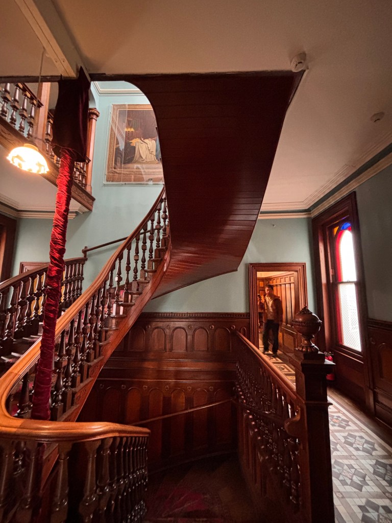 We arrived in time for high tea, which felt perfectly suited to the surroundings. The rooms were filled with period furnishings, rich woodwork, and tall windows framing sweeping views of the peninsula. Afterward, a guided tour led us through the grand hallways, up the ornate staircases, and into rooms that seemed to echo with the stories of the Larnach family — a blend of ambition, elegance, and heartbreak.