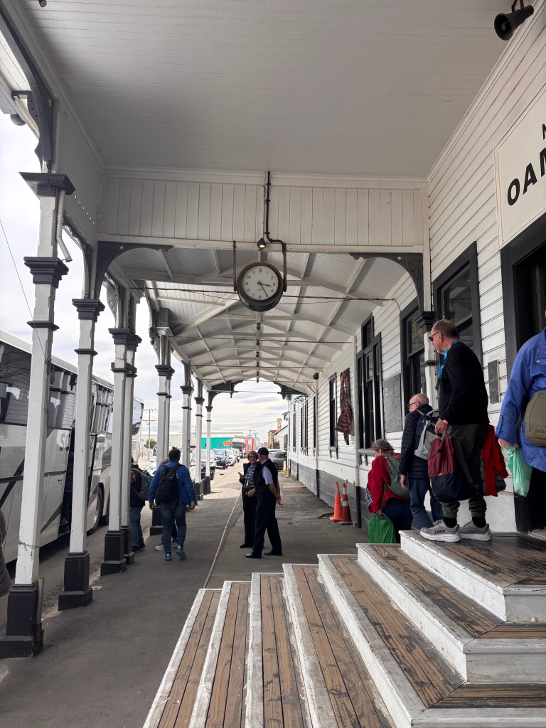 We left early that morning, breakfast over at the hotel before climbing back on the coach to head toward Oamaru. The plan was simple but charming: a train ride into town, then a bus to the Victorian Precinct — a piece of history frozen in stone.