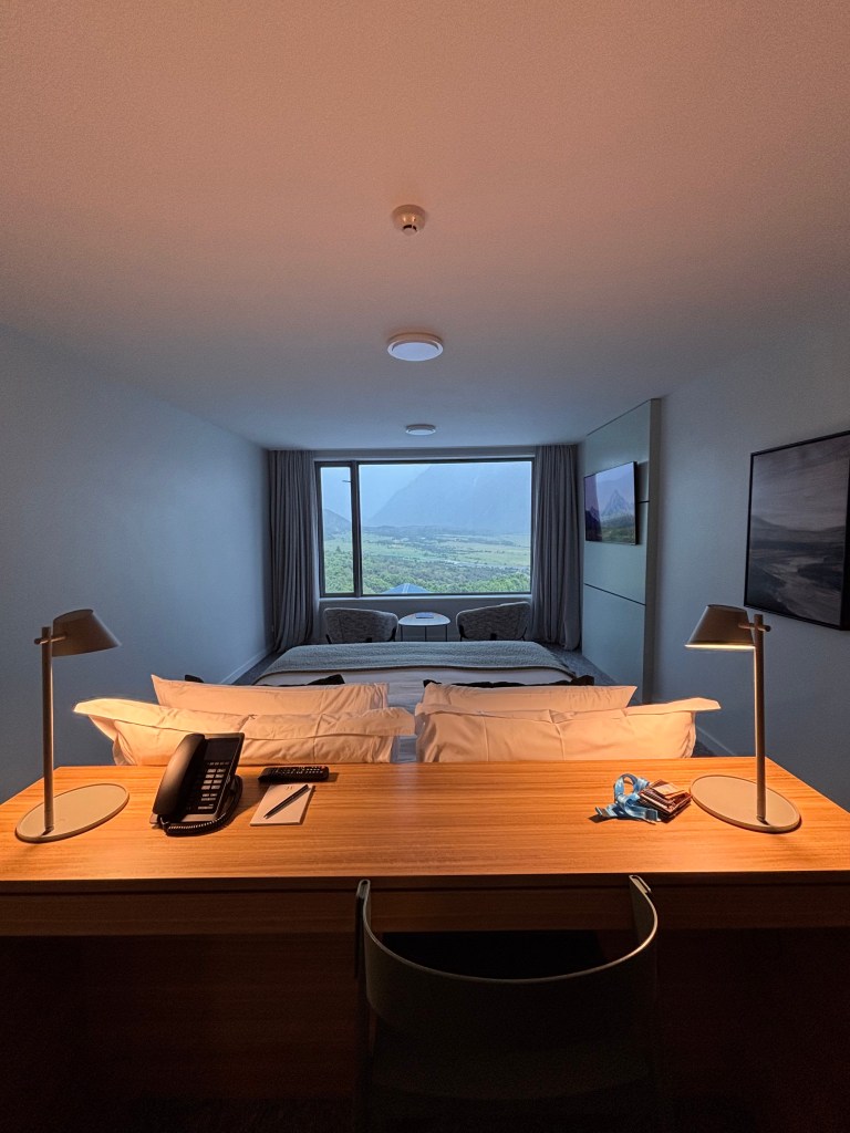 By the time we arrived at the Hermitage Hotel, night was beginning to fall, and the jagged peaks around us — including Aoraki/Mount Cook — seemed to glow in the fading light. The Hermitage sits deep in the heart of the Aoraki / Mount Cook National Park. It’s not just a hotel. It’s a base camp for adventure, framed by glaciers, alpine terrain, and some of New Zealand’s most breathtaking scenery.