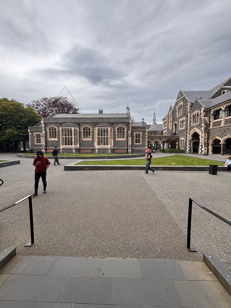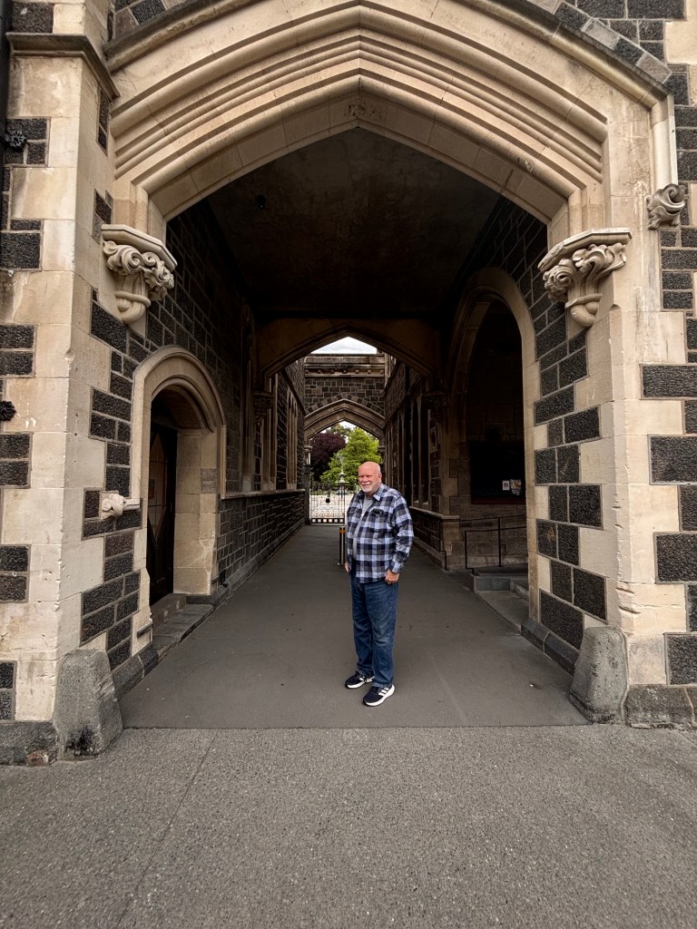 The short flight from Auckland to Christchurch was smooth and surprisingly full. The boarding area didn’t seem crowded, so I was caught off guard to see every seat occupied. We had been assigned separate seats near the front, but Stephen managed to switch us to the last row so we could sit together. Normally, that’s not ideal for boarding or deplaning — but in New Zealand, they use both the front and rear doors, which makes it much quicker (except when the jet bridge is broken, of course).